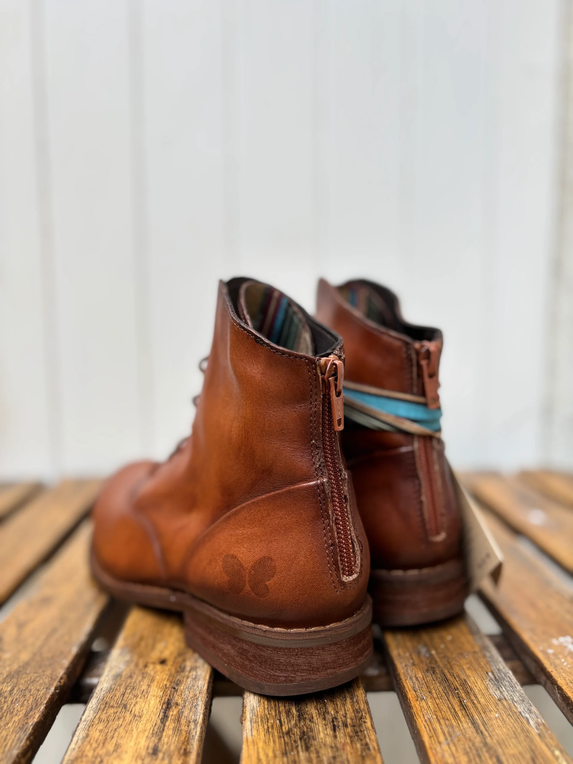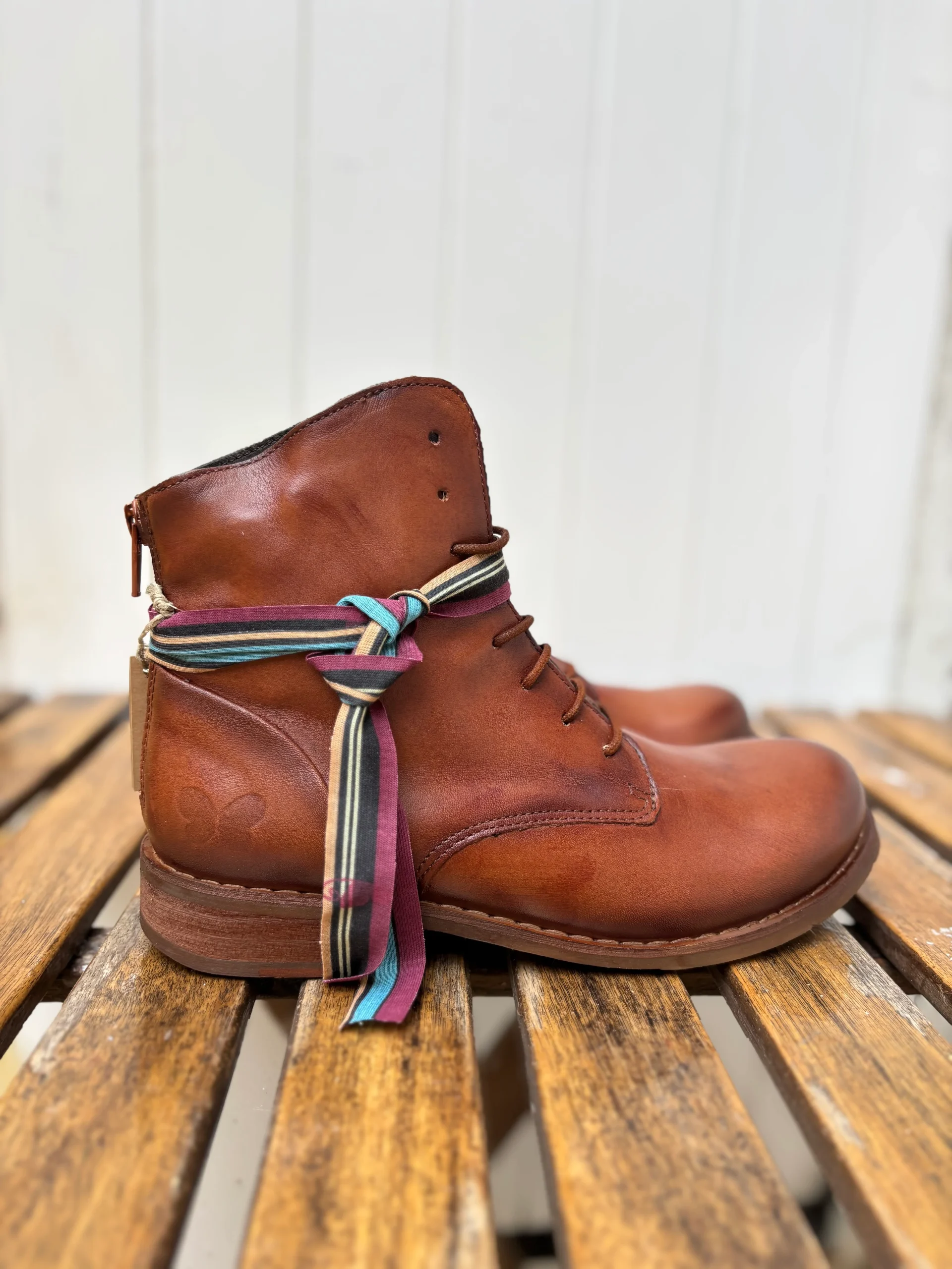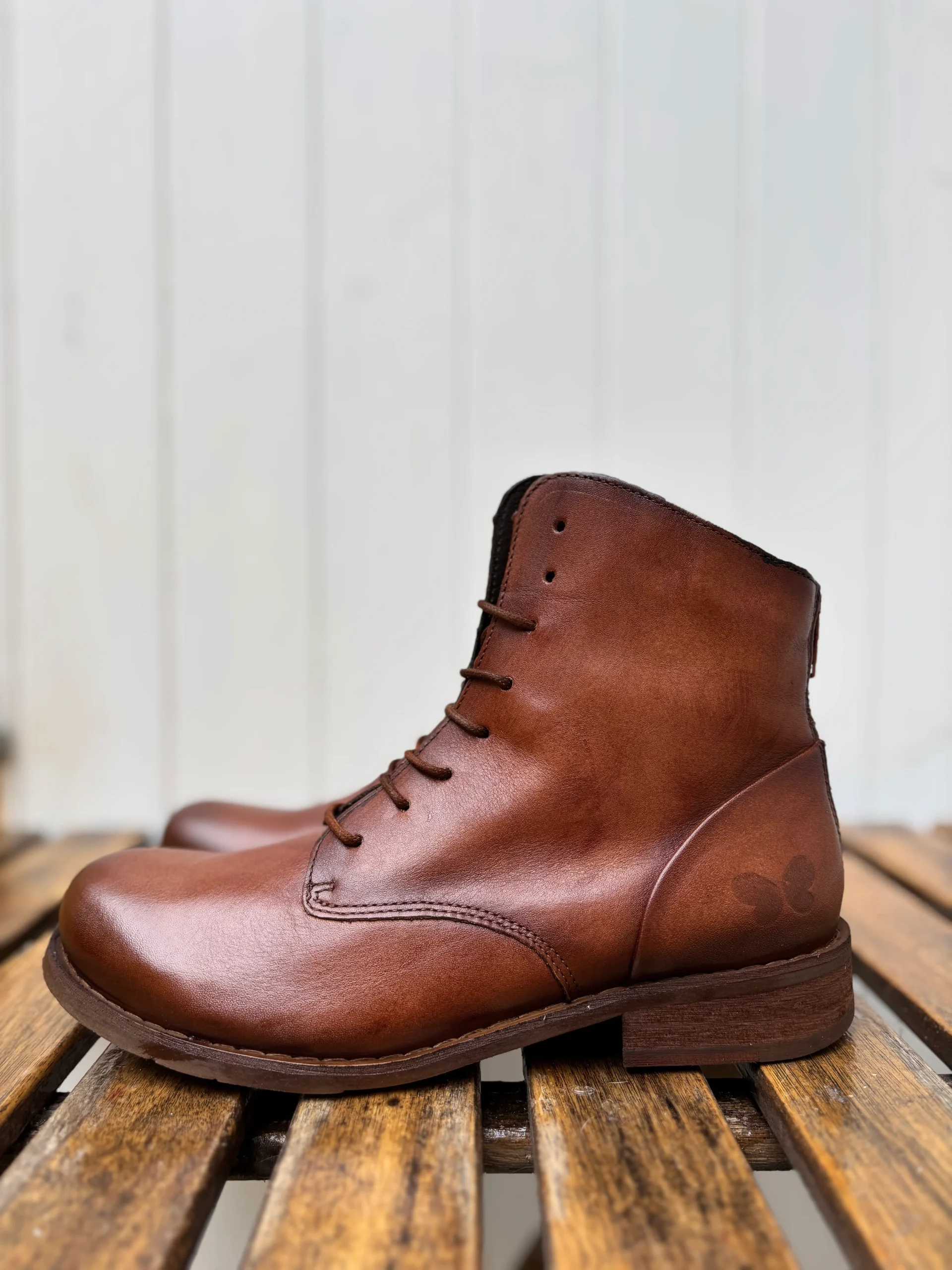 Cette bottine à lacet est l’un des modèles intemporels chez Felmini. Facile à enfiler par sa fermeture à l’arrière, vous pouvez la régler par son lacet devant, sa couleur est incroyable avec cette patine cognac. Existe également en cuir marron foncé.