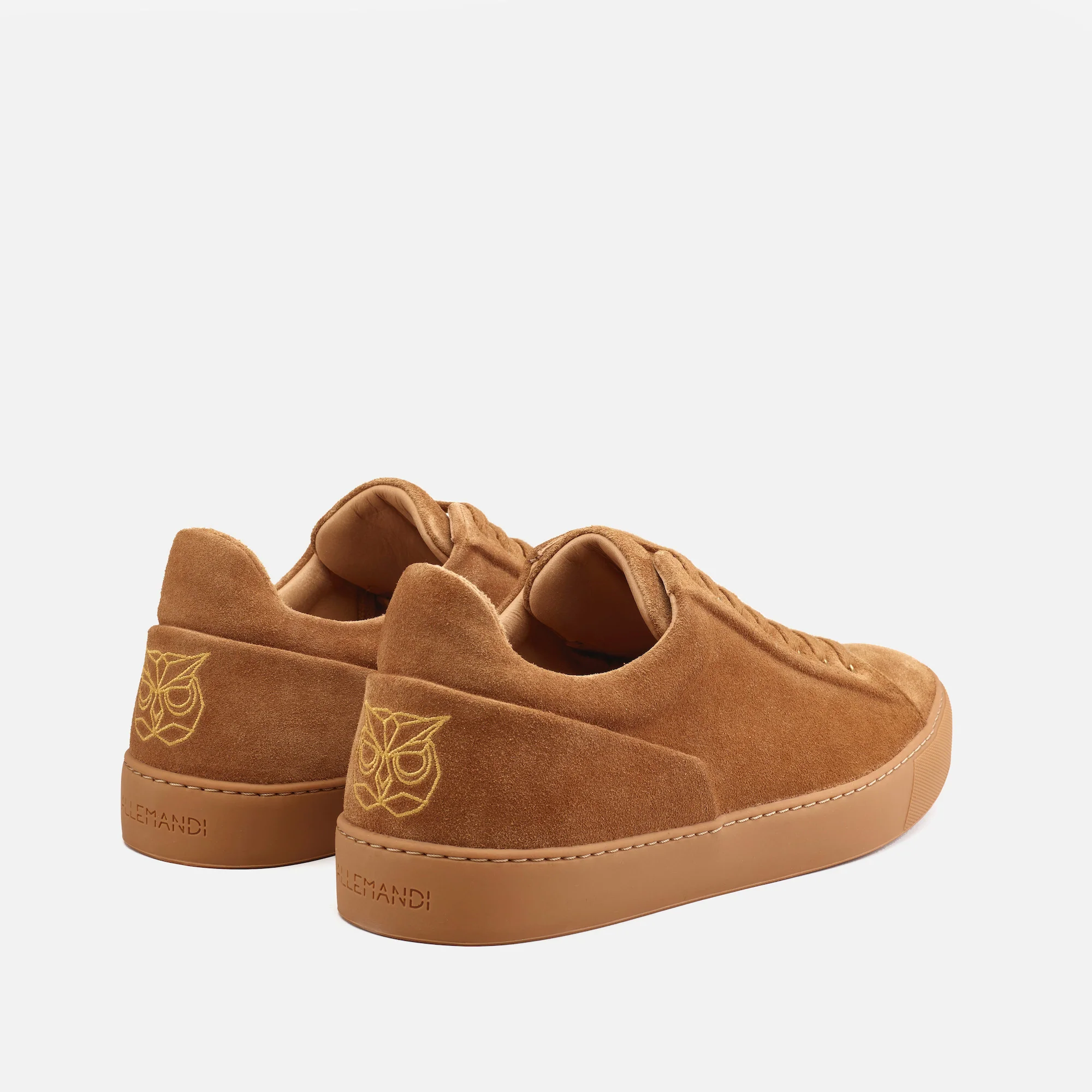 Le minimalisme de ce modèle est rehaussé par la présence du logo Allemandi brodé sur le talon ainsi que par la semelle au motif de plumes.