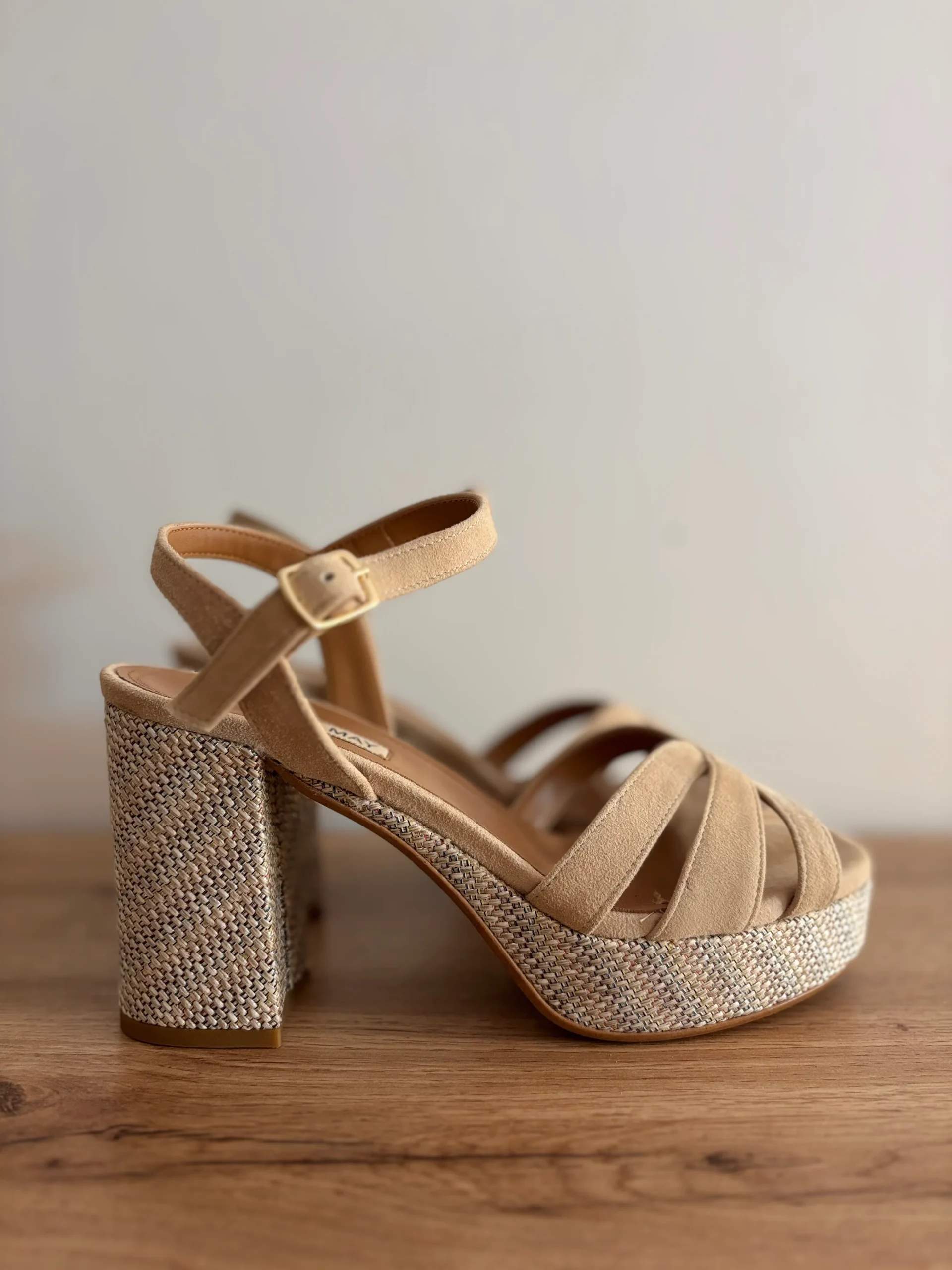 Sandales 716 Beige en cuirs velours de LARA MAY.