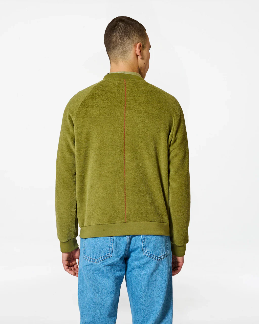 Sweat en bouclette éponge Col rond, manche raglan Matières : 52% Polyester recyclé, 48% Coton biologique Le mannequin mesure 185 cm et porte la taille M Coupe : droite La ligne rouge piquée dans le dos, signature emblématique de Homecore, symbolise l’équilibre du corps et de l’esprit Fabriqué au Portugal