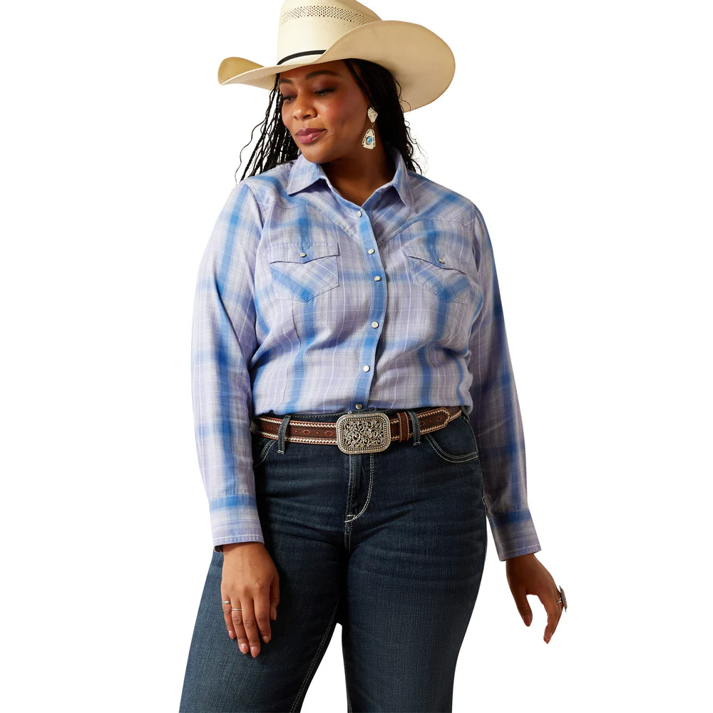 Conçue pour durer, cette chemise est pré-lavée pour minimiser le rétrécissement et garantir un ajustement parfait. Fabriquée en coton 100 %, elle offre un confort exceptionnel tout au long de la journée. Polyvalente et durable, elle est une pièce essentielle pour compléter la garde-robe de toute cowgirl.