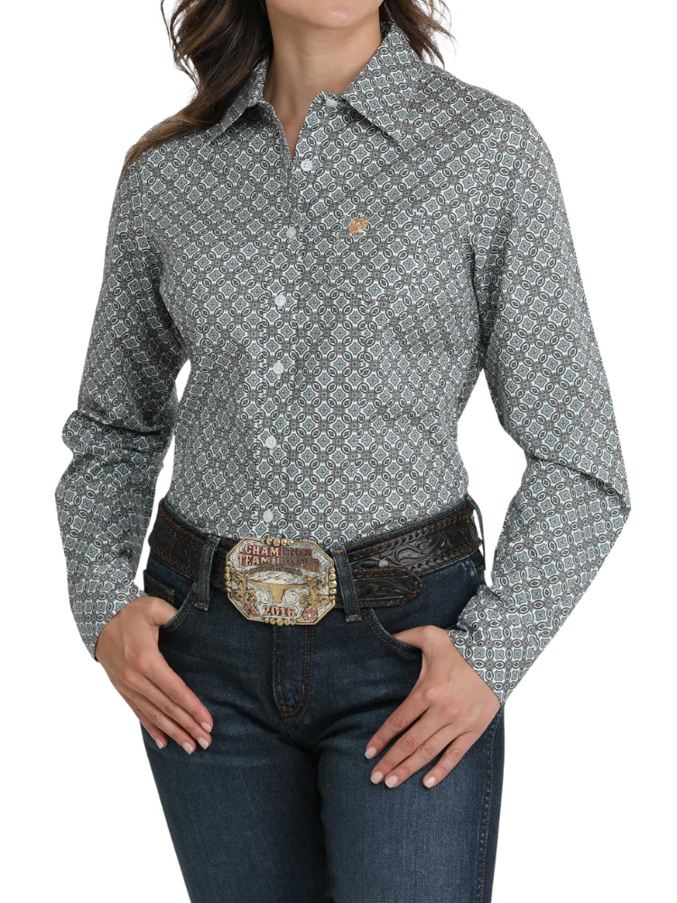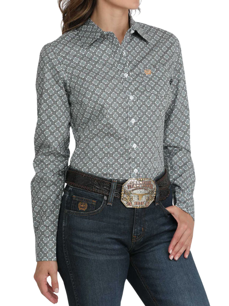 La chemise Cinch® à imprimé médaillon bleu et blanc est un incontournable du vestiaire western féminin. Confectionnée dans un mélange extensible de coton et d’élasthanne, elle offre un confort optimal et une belle liberté de mouvement. Sa coupe classique avec col ouvert, boutons blancs et poche poitrine discrète brodée du logo Cinch ajoute une touche raffinée à un motif déjà élégant. Parfaite pour les journées à l’écurie, les compétitions ou les sorties en ville, elle se porte facilement rentrée dans un jean ou ouverte sur un t-shirt. Polyvalente et durable, cette chemise est une valeur sûre pour toutes les cavalières au style affirmé.