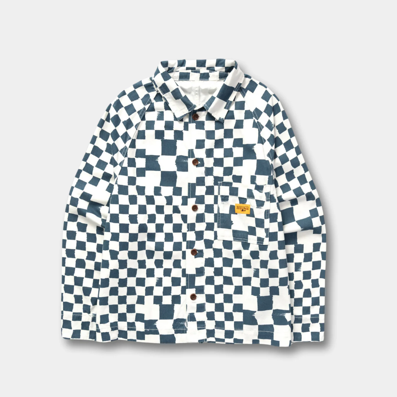 Veste à motif damier Matière : 100% coton biologique GOTS – Toile Drill Coupe : regular Manches raglan Fentes sur les côtés Fermeture à 5 boutons