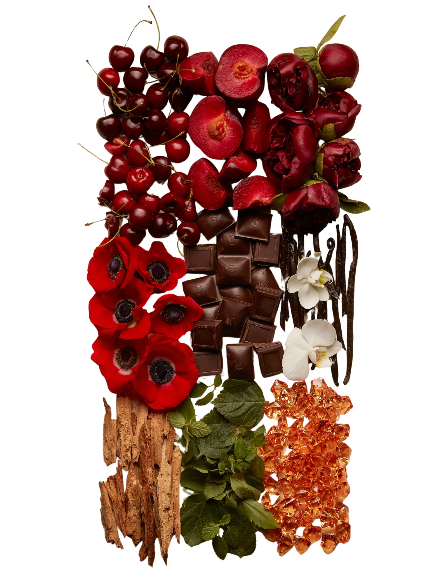 Au cœur, un bouquet de pavot rouge et de pivoine apporte une touche féminine et délicate, avant de céder la place à la chaleur sensuelle de la vanille orchidée et du musc. Le résultat : un parfum addictif, aussi espiègle que romantique, qui laisse derrière lui un sillage de pure séduction.