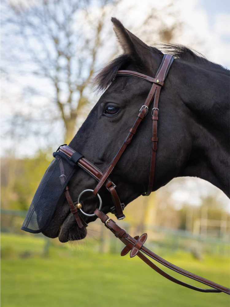Protégez efficacement le nez sensible de votre cheval contre les insectes et le pollen avec ce filet de nez BR. Léger et respirant, il est fabriqué en mesh de polyester de haute qualité qui laisse passer l’air tout en formant une barrière contre les plus petits irritants. Facile à installer grâce à sa fermeture Velcro, il s’attache directement à la muserolle sans gêner la respiration de votre cheval. Idéal pour les chevaux sensibles ou souffrant d’allergies saisonnières.