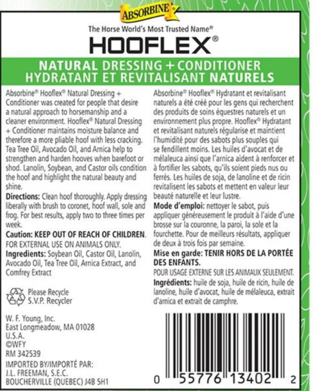 HooFlex® Liquid Veterinary fournit des soins entièrement naturels pour les sabots à l’aide d’ingrédients à base de plantes tels que l’huile d’arbre à thé, l’arnica, la consoude et l’huile d’avocat.