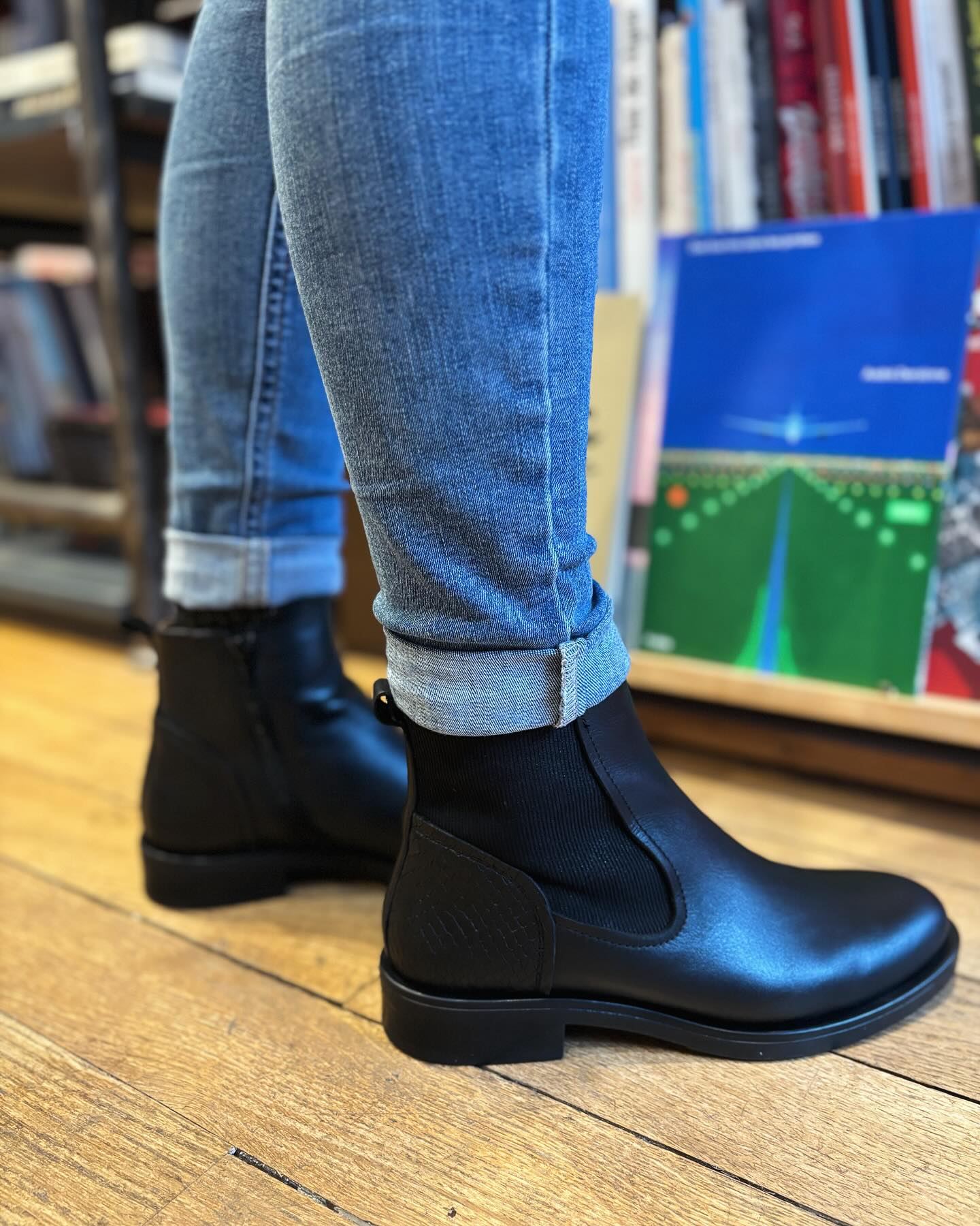 Boots KARL en cuir noir de MKD Cet hiver, les chelsea boots sont à l’honneur ! Cette paire de Chelsea boots ne vous laissera pas indifférente. Son petit plus ? Sa couleur et son façon croco, son confort et son zip à l’intérieur facile à enfiler. Elles accompagneront parfaitement toute votre garde-robe. Disponible en peau […]