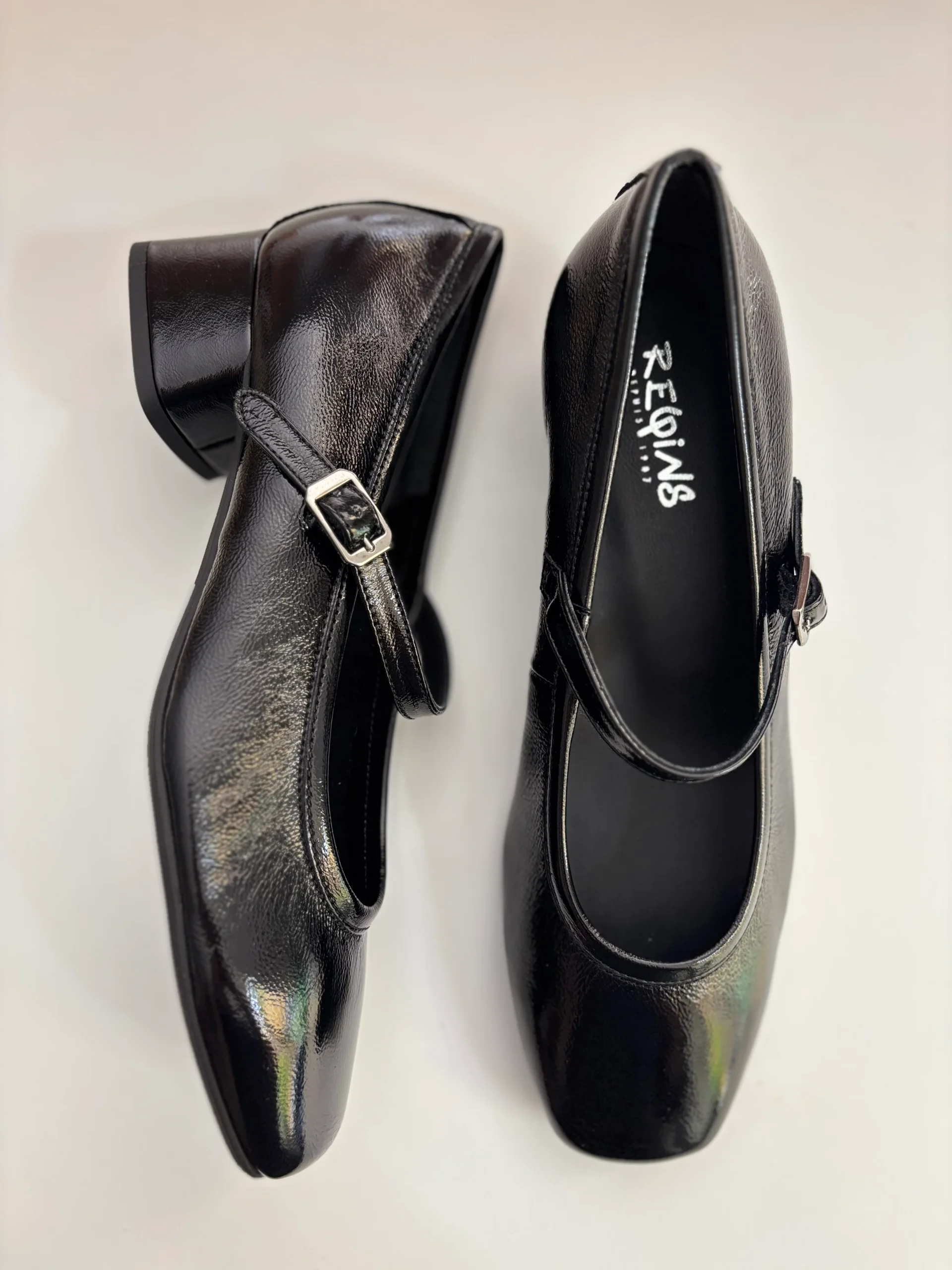 Cette babies à talon en cuir vernis avec sa bride, son bout carré lui donne son côté chic pour toute les occasions, une cérémonie, une soirée ou une balade en ville. Existe également en cuir naplak off white.