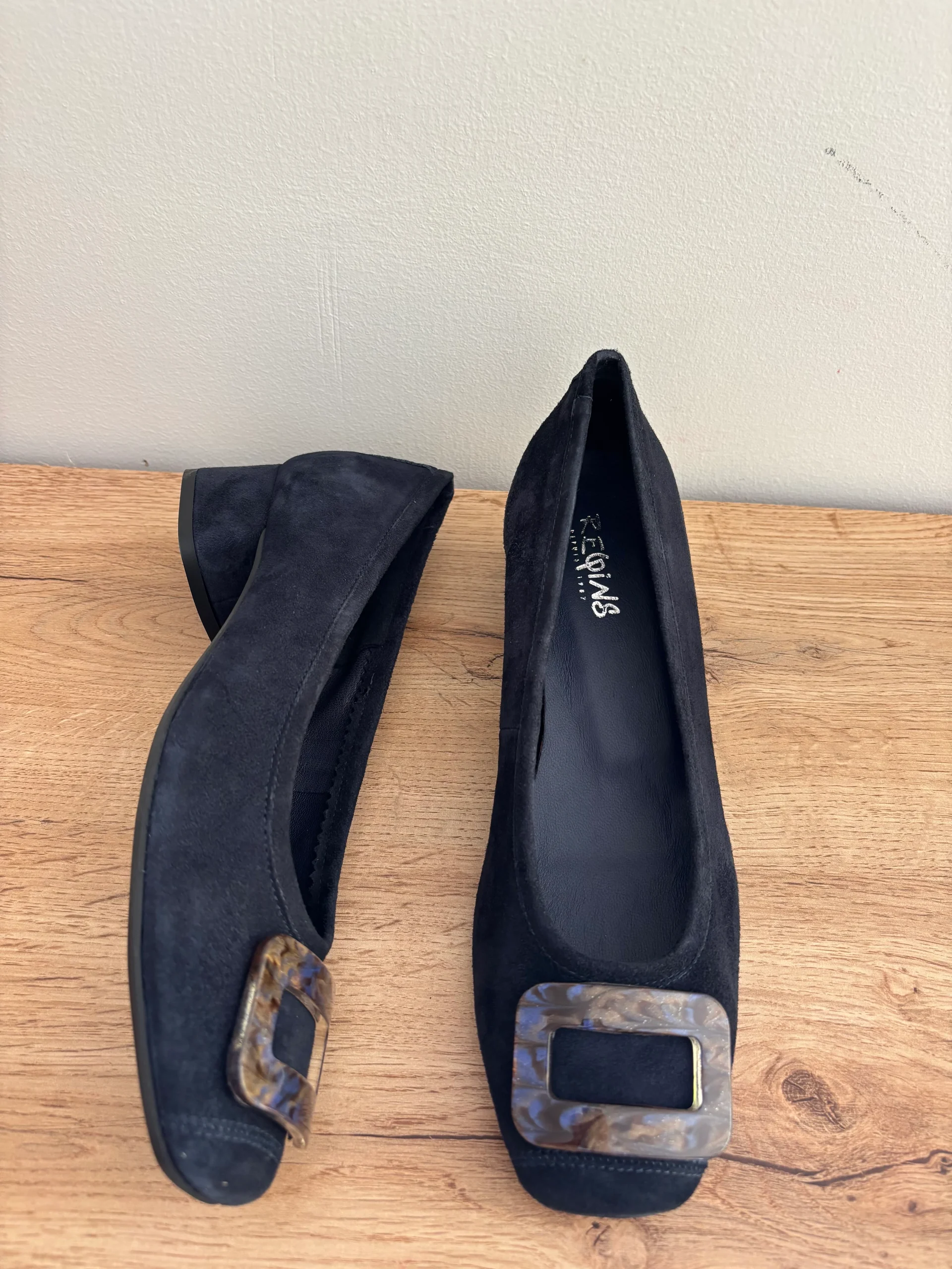 Ballerine KORNELIA en cuir velours bleu nuit de REQINS
