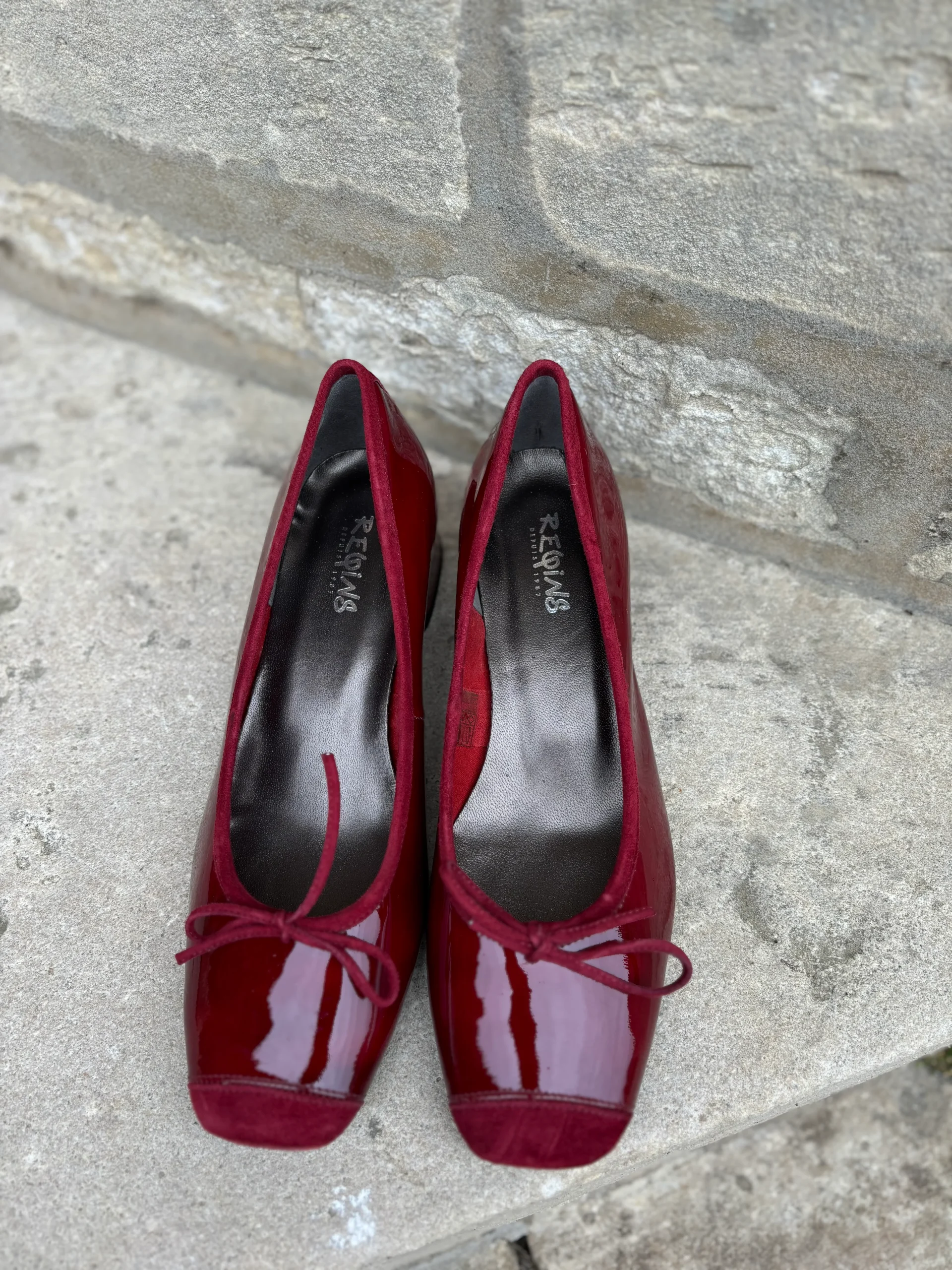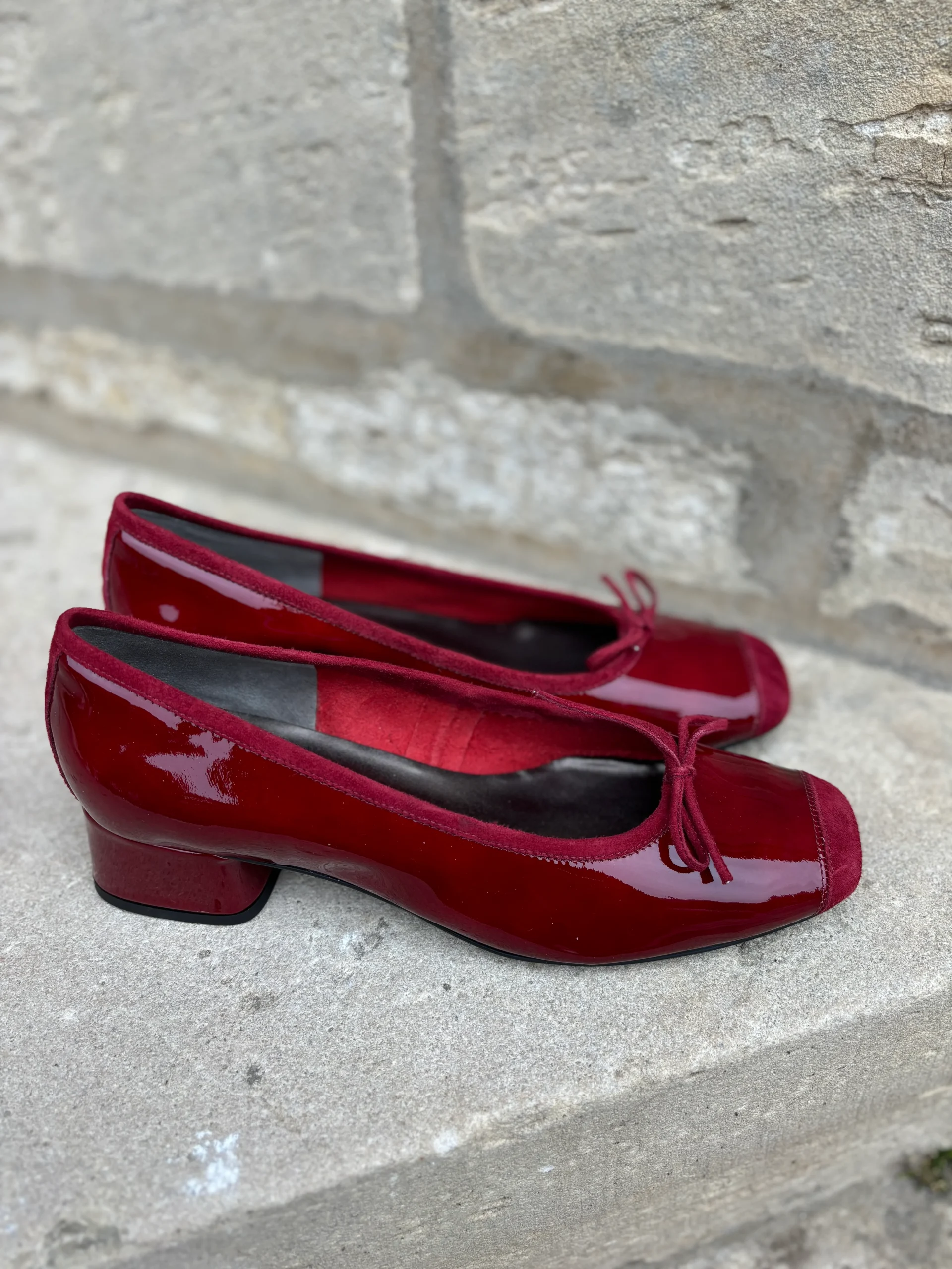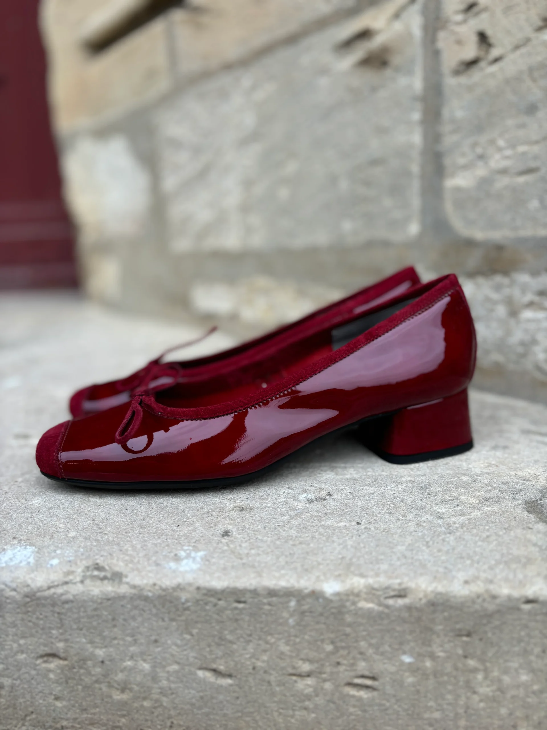 Ballerine KYRIEL en cuir vernis cerise à talon de REQINS.