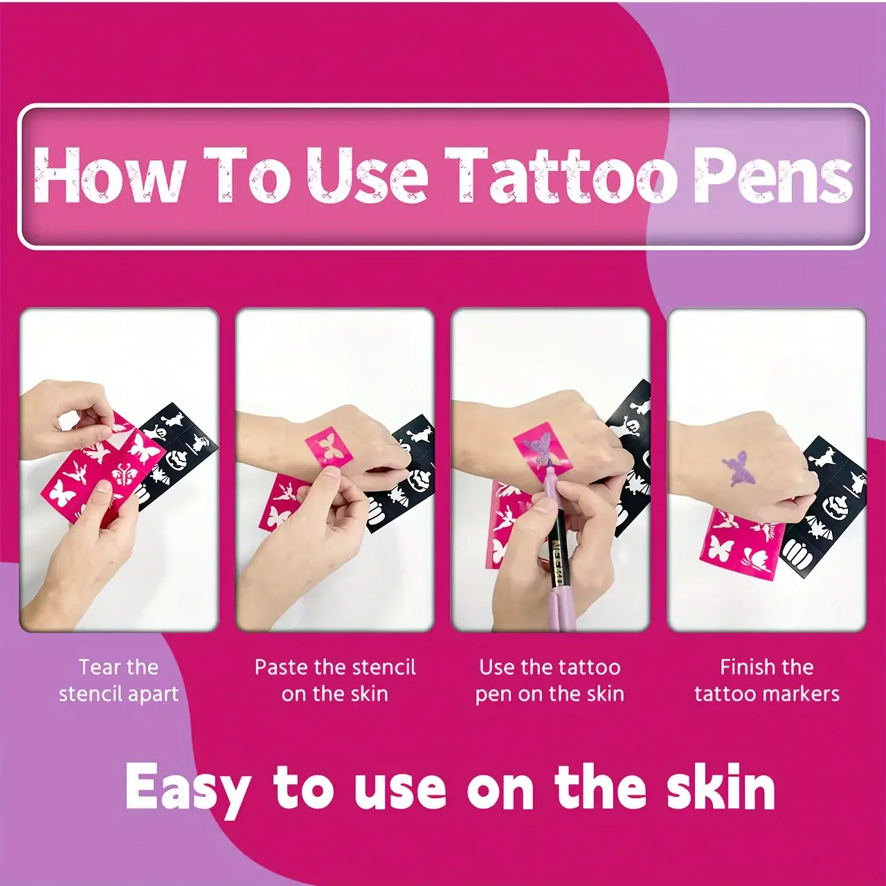 - Facilité d’utilisation : Les marqueurs couleurs tatouage glissent en douceur sur la peau et les autocollants se posent en un clin d’œil, rendant l’expérience accessible à tous.