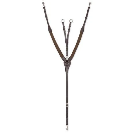 Bricole en cuir et élastique avec martingale à anneaux amovible et quincaillerie en acier inoxydable.