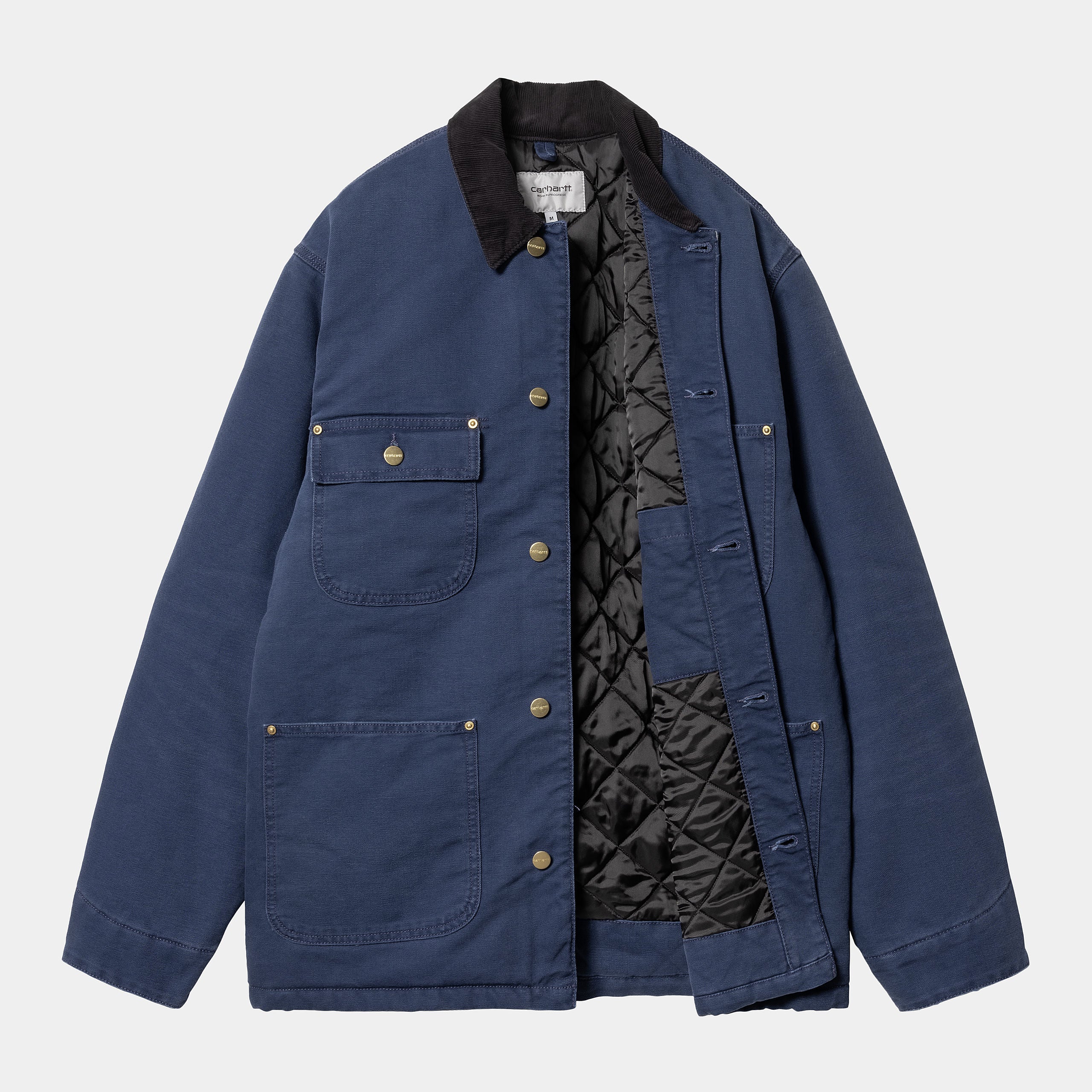 Veste Référence : I027357 Matière : 100% Organic Cotton, 12 oz Coupe : original loose fit Doublure matelassée en losange Col en velours côtelé Fermeture boutonnée sur le devant