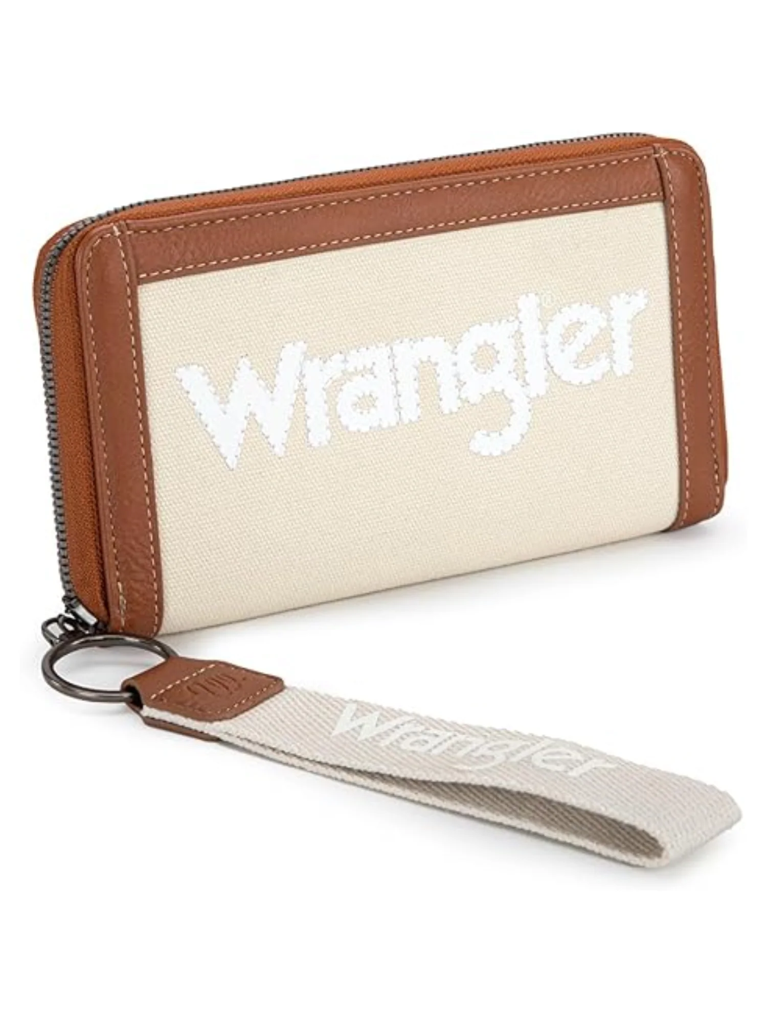 Le portefeuille Wrangler® en toile avec garniture en cuir combine praticité et style. Fabriqué à partir de toile durable, il est orné du logo Wrangler brodé à l’avant, ajoutant une touche de marque élégante. Sa fermeture éclair supérieure garantit la sécurité de vos effets personnels, tandis que l’intérieur est conçu pour accueillir vos cartes d’identité, cartes de crédit, billets, et autres objets essentiels.