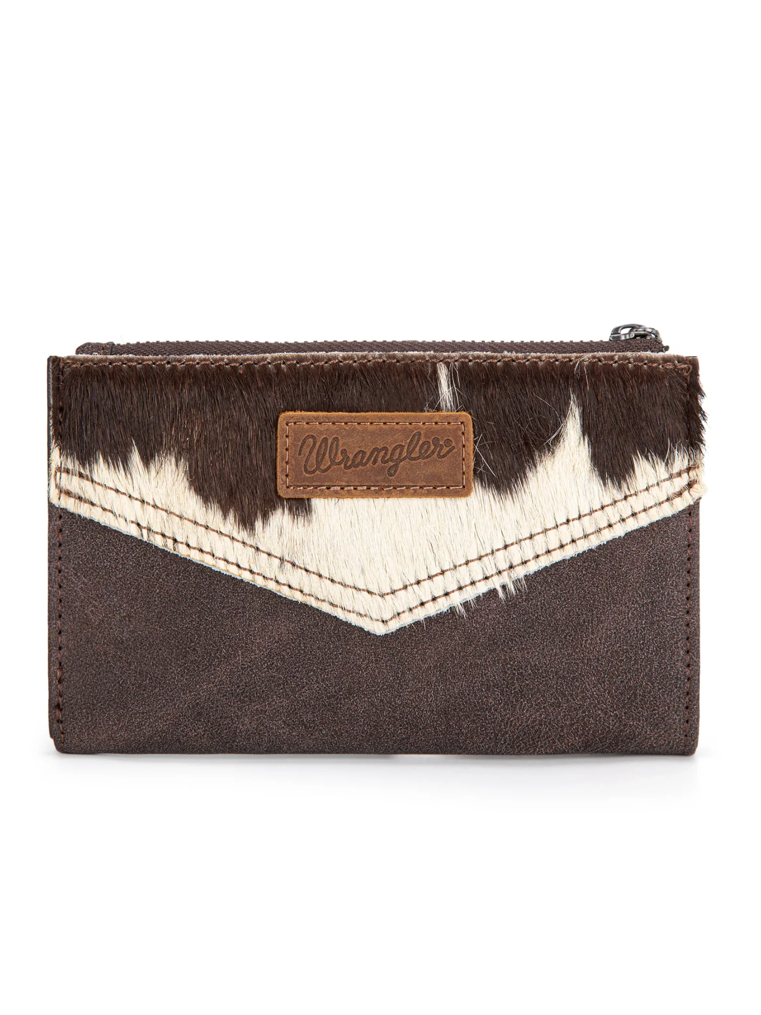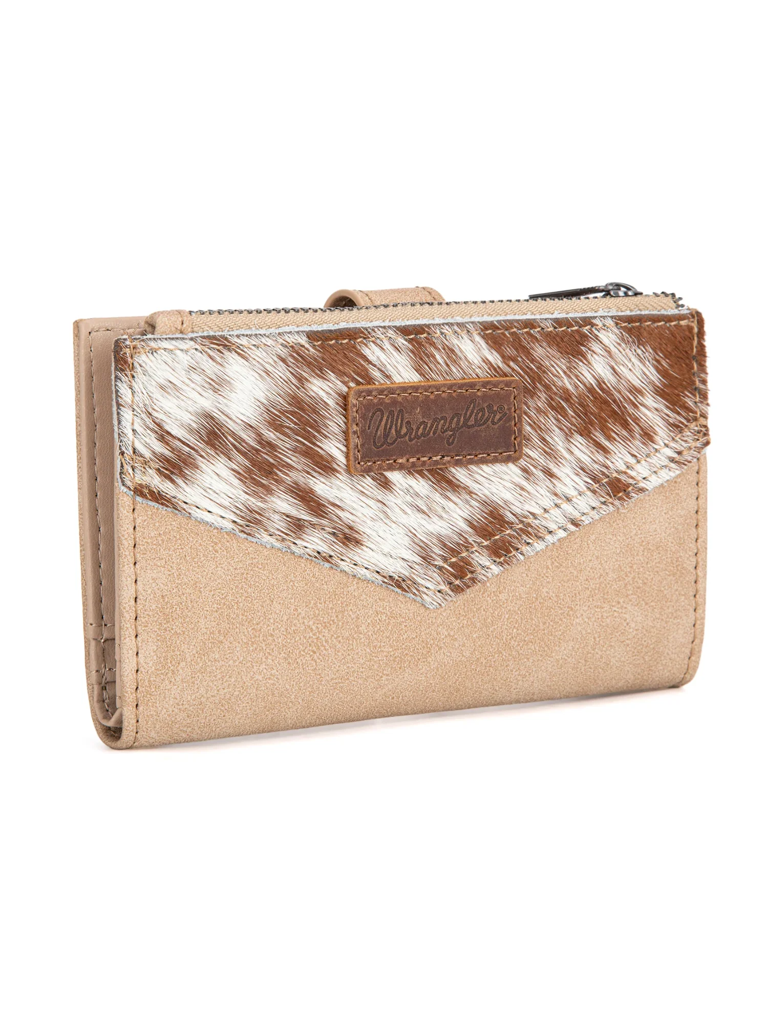 Ce portefeuille bi-fold pour femme de la collection Wrangler par Montana West allie authenticité western et fonctionnalité moderne. Avec son avant en véritable cuir de vachette à poil naturel, chaque pièce est unique.