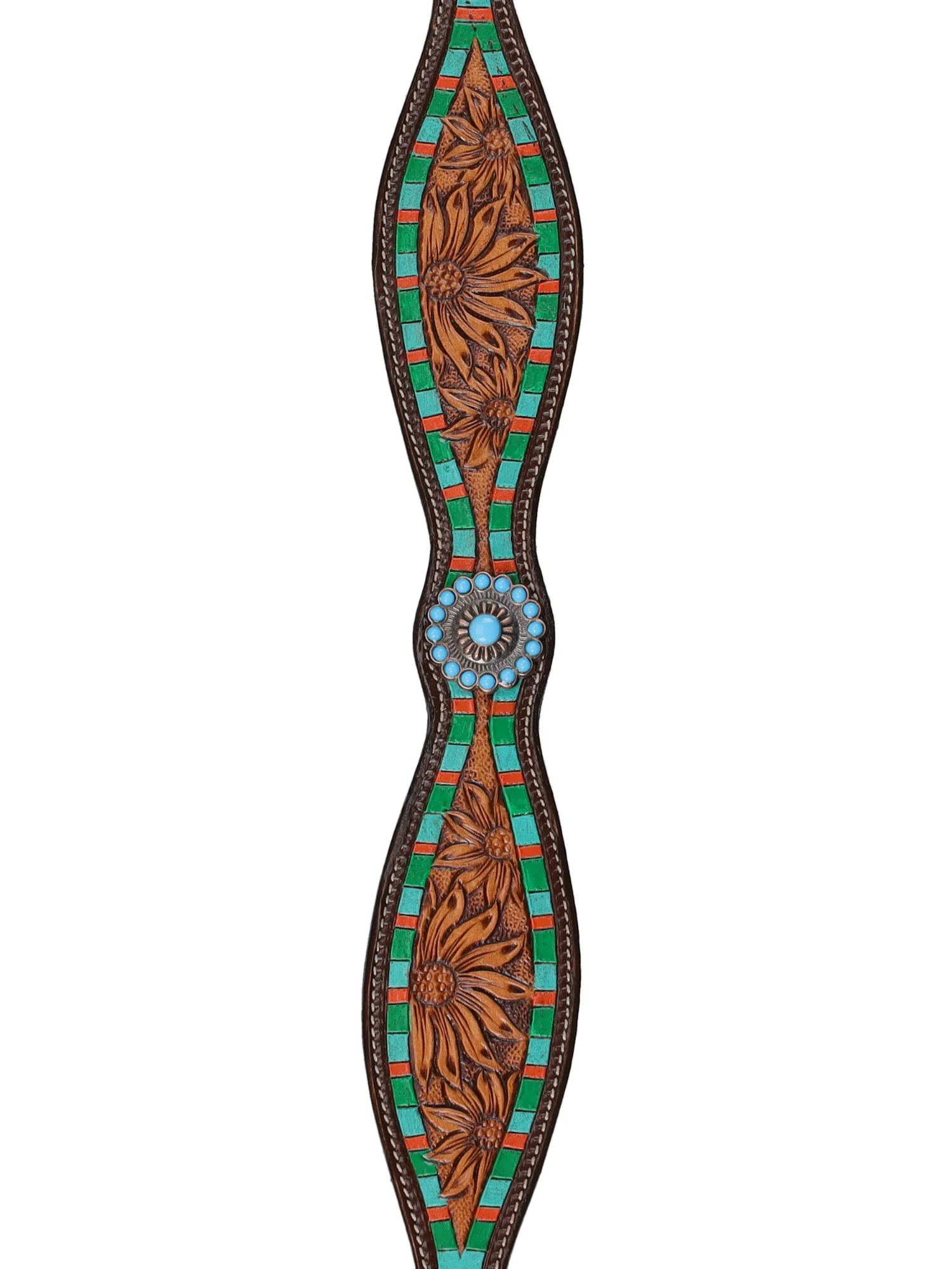 - Concho central décoratif et couture contrastante