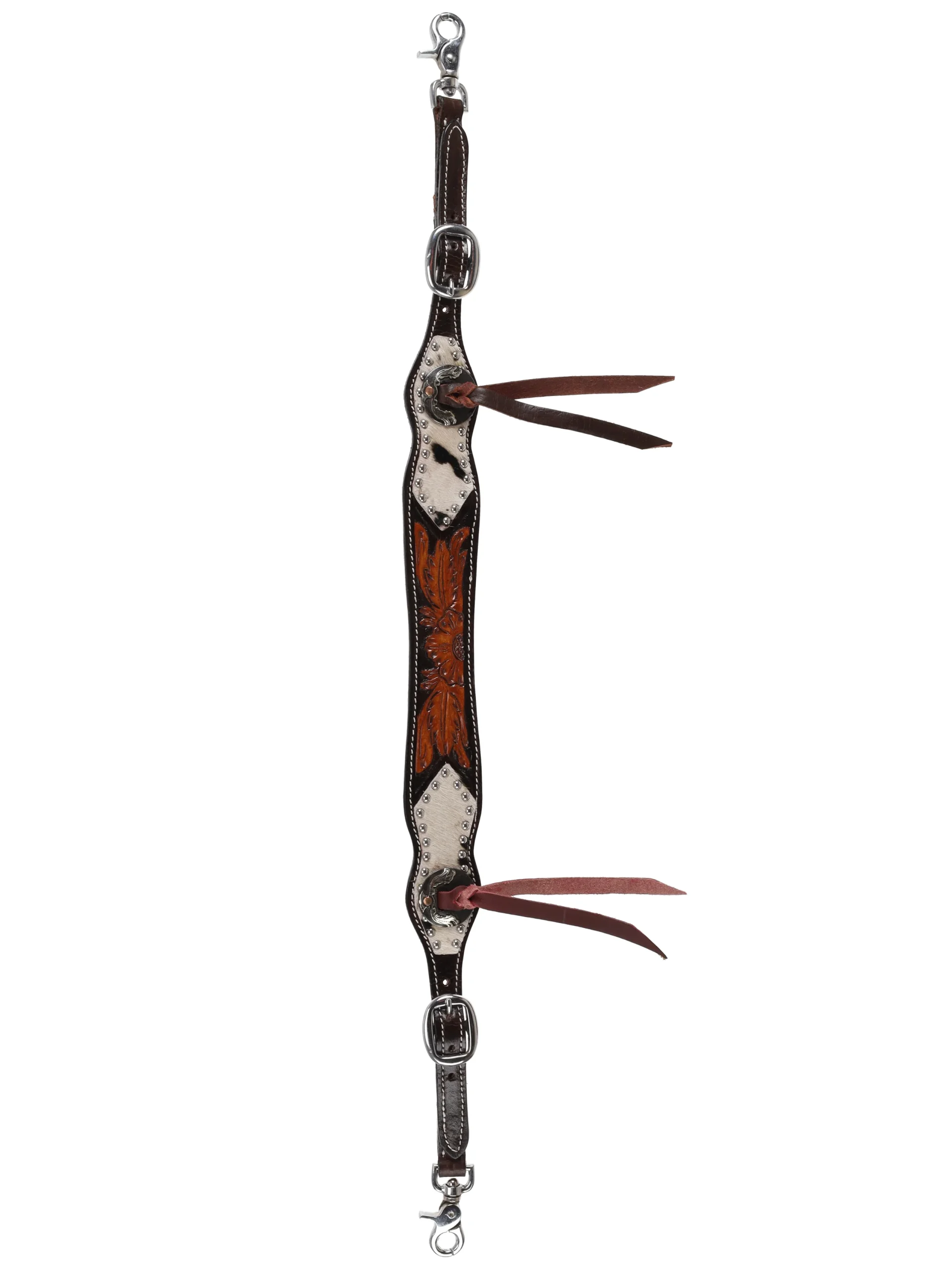 Le Showman® Sierra Blooms Wither Strap combine élégance et fonctionnalité pour offrir confort et sécurité au cavalier tout en ajoutant une touche esthétique à votre équipement de selle. Fabriqué en cuir huilé foncé, ce remonte-bricole présente un outil floral huilé moyen et des incrustations de cuir de vache, créant un design à la fois robuste et élégant. L’ajout de clous en argent et de conchos fendus antiques avec des attaches en cuir accentue son style Western.