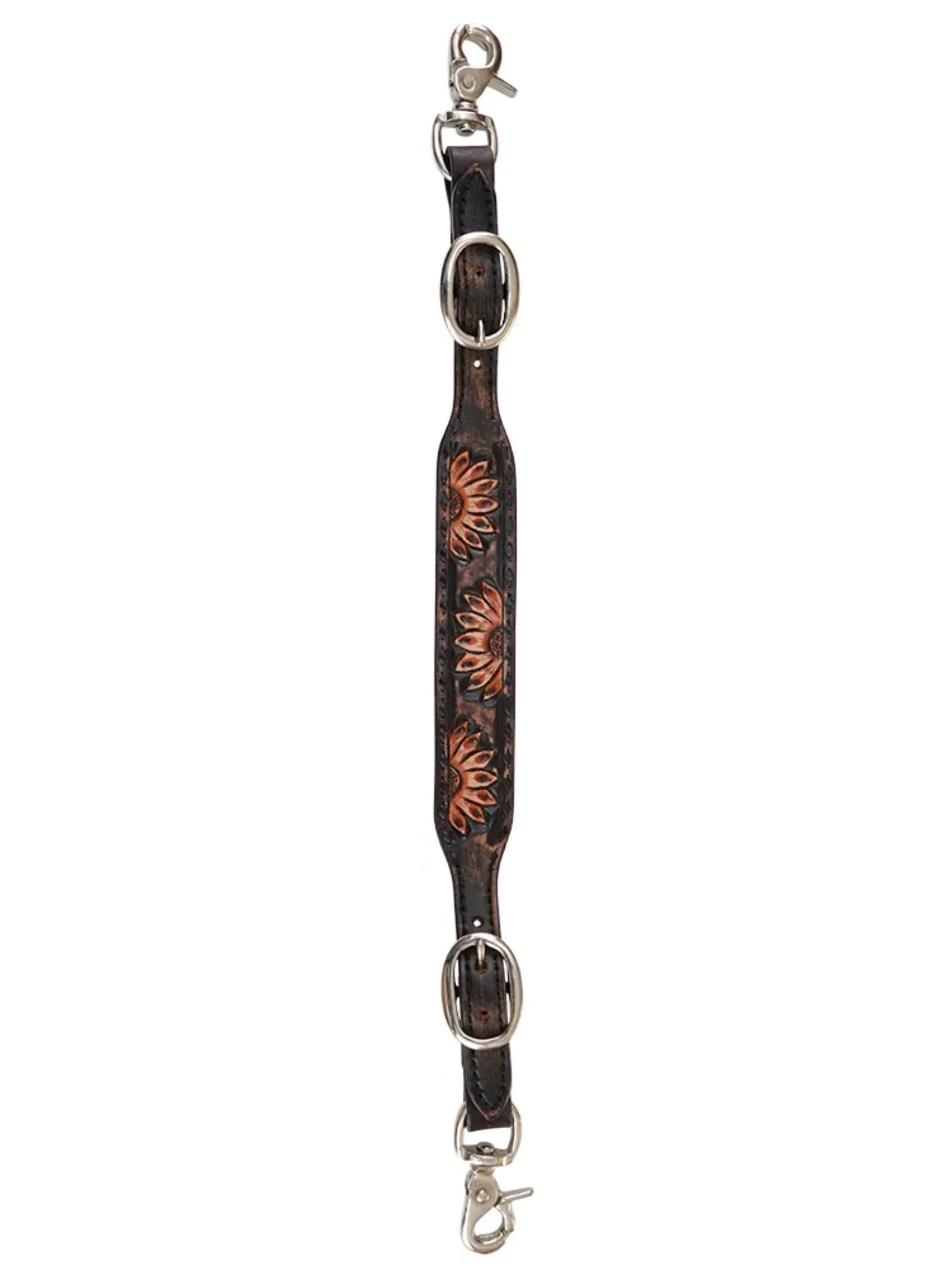 Ce modèle en cuir de qualité est orné d’un magnifique motif tournesol sculpté, ajoutant une note élégante et rustique à votre ensemble. Son ajustement facile est assuré par des boucles réglables et des attaches rapides par mousquetons, permettant une mise en place rapide et sécurisée à chaque utilisation.