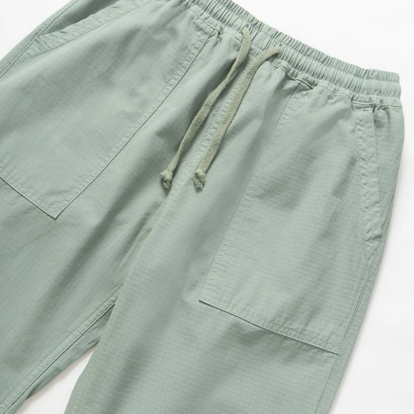 Pantalon en ripstop Matière : 100% coton biologique GOTS – Toile Ripstop Coupe : droite et décontractée Taille ajustable avec cordon de serrage Poches fatigue