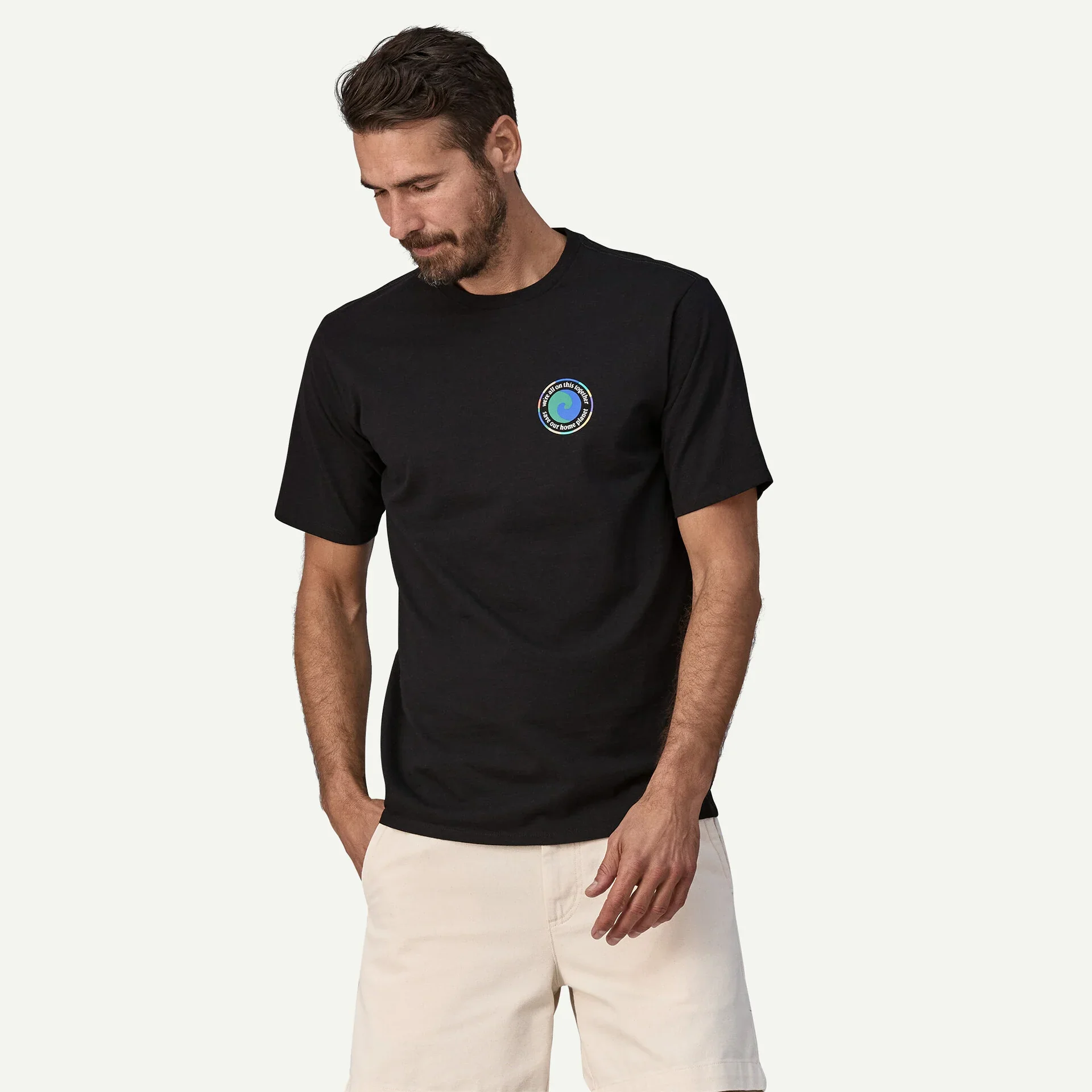 T-shirt à motifs Référence : 37768 Matières : Jersey 50% coton recyclé et 50% polyester recyclé post-consommation, 186 g/m² Poids : 213g Fabrication : Mexique Ce modèle est fabriqué dans un atelier Fair Trade Certified™, ce qui signifie que les ouvriers qui l’ont confectionné ont reçu une prime pour leur travail
