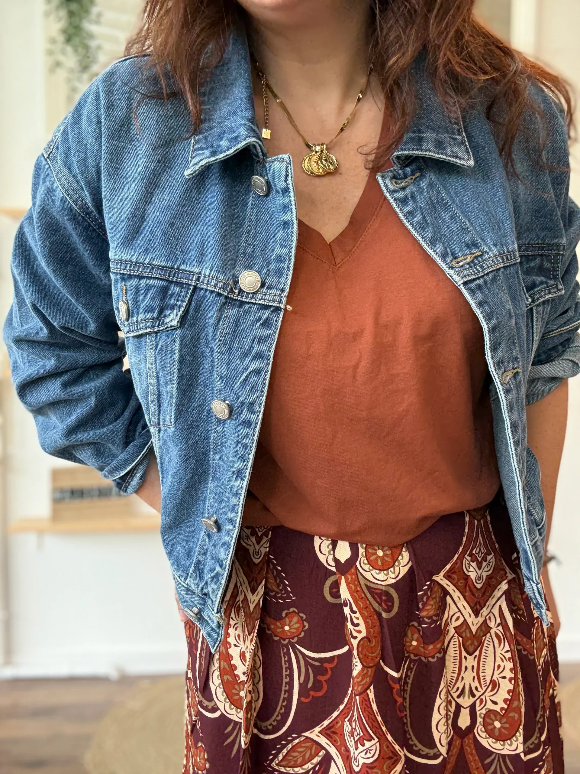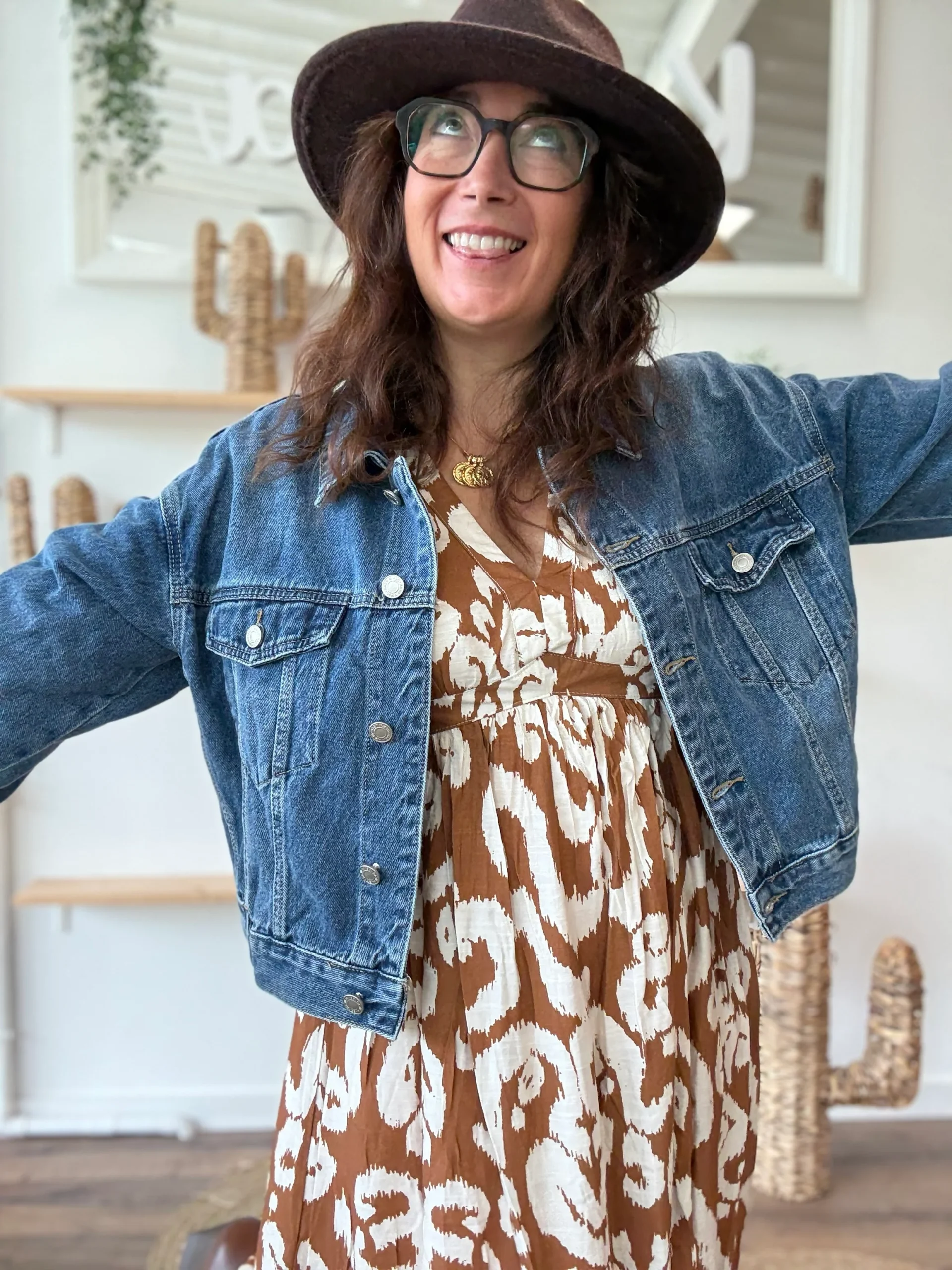 L’indispensable du dressing cowgirl fait son retour ✨ Une veste en jean oversize qui apporte tout de suite du caractère à vos looks. À porter sur une robe bohème, un chemisier imprimé ou un tee-shirt basique… elle fait le job en toutes saisons.